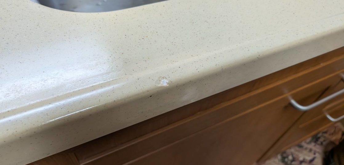 荒川区の分譲マンションにお住まいお客様からのご依頼で、人工大理石キッチン天板のひび割れをリペア補修させていただきました。キッチン天板は張り替えが非常に困難なものとなり、住宅建材の中でも1.2を争うほど業者泣かせな建材です。