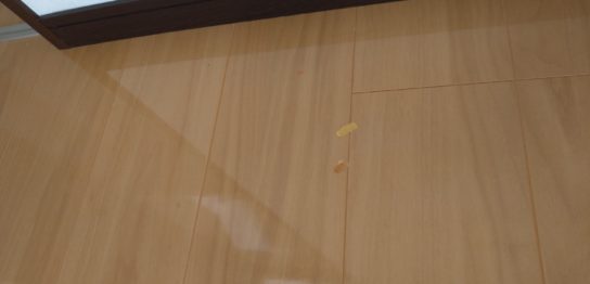 中野区の現状回復現場にて。 鏡面のノンワックスフローリングの補修をさせていただき