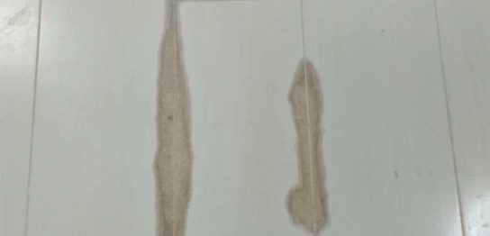 さいたま市分譲マンションのリノベーション工事にて 劣化変色したフローリングの一部