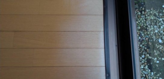 鎌倉市のリフォーム現場にて。 リビングの窓際、フローリングの日焼け補修をさせてい
